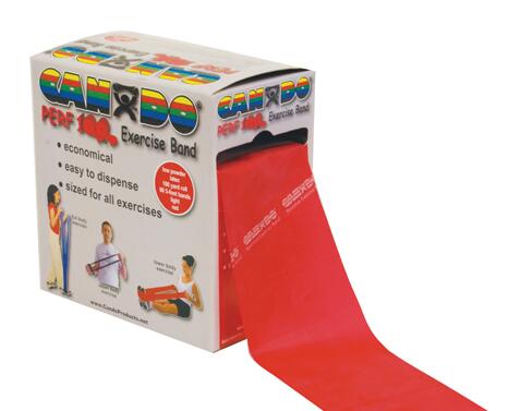 $116.72Latex free * 100-YARD PATIENT ROLLS * Red Light * Cando© band is used for rehabilitation conditioning and training * 5-inch wide * Cando© band is highly effective when used alone or with the handle and anchor accessories * All exercise bands are lightweight take up minimal room and are highly portable * There are 8 progressive levels of resistance to accommodate the lightest to heaviest requirements * Cando© is licensed to use the Thera-Band© color sequence so resistance level is easily identified * Perforations every 5 feet yielding 60 perfect-size pieces for all exercises * Easy to dispense; just pull and separate *