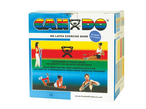 $73.6950 YARD DISPENSER BOX * Red Light * Cando© band is used for rehabilitation conditioning and training * 5-inch wide * Cando© band is highly effective when used alone or with the handle and anchor accessories * All exercise bands are lightweight take up minimal room and are highly portable * There are 8 progressive levels of resistance to accommodate the lightest to heaviest requirements * Cando© is licensed to use the Thera-Band© color sequence so resistance level is easily identified *